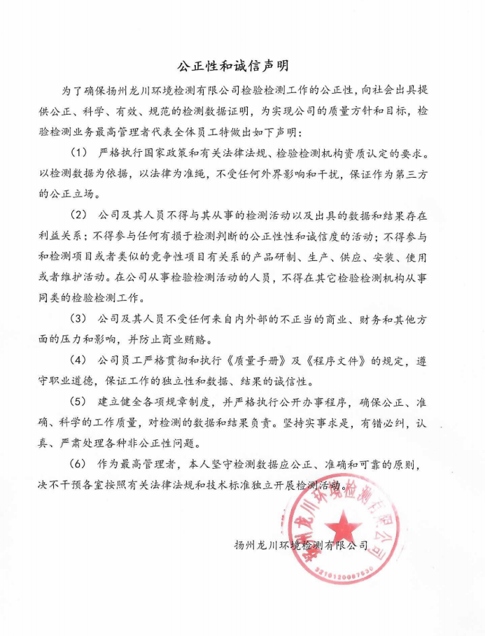 公司秉承“科學嚴謹、誠信公正、準確高效、滿意改進”質量方針,做到: